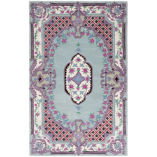 Vintage Hand Tufted Rug Medallion Floral Classic Design Light Blue Color 9x12